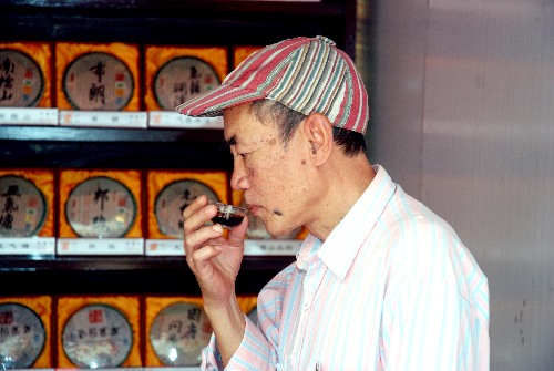 一位老茶友在茶城的茶鋪品茶 陳疌/攝