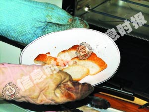 7、趁咖喱最后燜煮之際,把法國面包切成片,放入烤爐中烤脆。