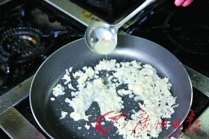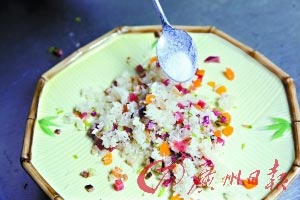 ????2.炒好的糯米飯加調料然后拌勻備用。