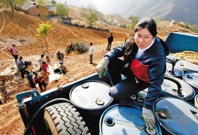 管艷被譽(yù)為云南省會(huì)澤縣馬路鄉(xiāng)最好的女司機(jī)。每天,她要載5噸~10噸水,在最難走的山路上跑一兩個(gè)來(lái)回,無(wú)償?shù)匕阉偷饺l(xiāng)最缺水的村莊——大坪村岔河村民小組。