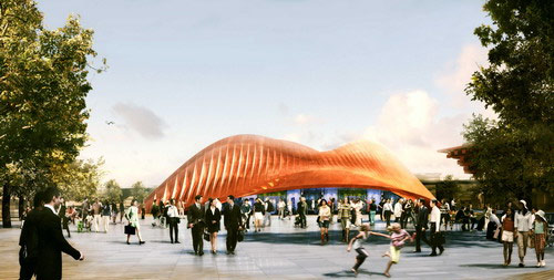 ????遠觀,猶如烈焰紅唇;近看,仿佛是流動的沙丘;用手去觸碰,發現原來是“魔術戲法”:建筑表面的玫瑰金色不銹鋼板材呈現出的富于變幻的色彩,角度、色澤不同,形成流動沙丘的光感。整個阿聯酋館由三座高達20米、連綿交織、大小不同的“沙丘”組成,分別代表古代、現代和未來。為體現逼真的效果,阿聯酋館的外部呈現出沙丘特征:在向風的一面,呈“沙丘”弧形的不銹鋼板在陽光下金光閃閃,變換出沙漠特有的玫紅色和熱浪,呈現出天然沙丘的瑰麗;同時,它又將上海的風偏轉,保護光滑且半透明的背風面,使其免受強風和烈日的傷害。這種特殊的結構使整座建筑產生一種流動的感覺,每當微風吹過,觀眾似乎能感覺到“沙丘”在移動。