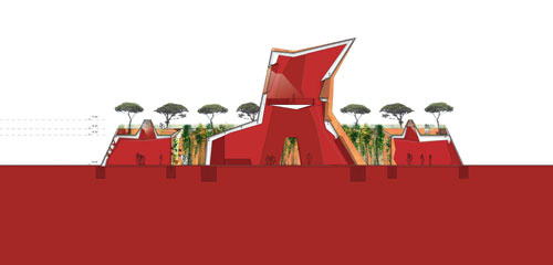 ????為了讓參觀者有一個(gè)舒適方便的參觀環(huán)境,展館做了不少人性化的設(shè)計(jì)。展館設(shè)計(jì)了眾多出入口,可以不需排隊(duì)等待,隨時(shí)根據(jù)自己的喜好停留、參觀。參觀者可以根據(jù)自己的喜好觀看展館里的視頻內(nèi)容,或者登上植被覆蓋的屋頂,在長(zhǎng)椅上小憩,欣賞周圍的美景。在開(kāi)放的翼樓上,還有為孩子們?cè)O(shè)計(jì)的游戲娛樂(lè)場(chǎng)。