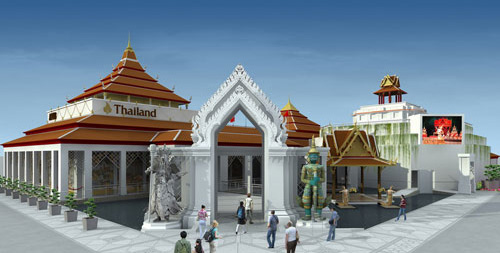 ????泰國館的內部裝飾設計采用泰國傳統圖案和一系列鮮亮的色彩,例如紅色、深紅色和金色。這些圖案和色彩配以優美的視聽技術,將為每一個展廳創造一種激動人心的氛圍。