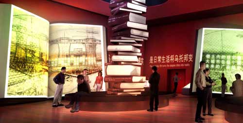 ????“昨日之夢(mèng)”展區(qū),用近五米高的巨型屏幕播放科幻影片,訴說(shuō)未來(lái)夢(mèng)想。“理想與實(shí)踐”展區(qū),以互動(dòng)虛擬書(shū)的形式呈現(xiàn)人類(lèi)歷史上對(duì)未來(lái)城市的描述,以九座雕塑闡述更美好城市的實(shí)踐,表現(xiàn)建設(shè)中的城市。“多種可能性”展區(qū)內(nèi)有一個(gè)36米高的宏大空間,用來(lái)播放一部動(dòng)畫(huà)電影,并在周?chē)鷪?chǎng)景中呈現(xiàn)出“生態(tài)之城”、“智慧之城”、“水之城”、“太空之城”、“能源之城”五個(gè)夢(mèng)幻般的未來(lái)城市街景,表達(dá)未來(lái)的城市發(fā)展和人類(lèi)的城市生活的各種可能性。“未來(lái)正在實(shí)現(xiàn)”展區(qū),運(yùn)用多媒體加模型的展示方式,通過(guò)“智慧家居、健康社區(qū)、低碳城市、和諧環(huán)境”四個(gè)主題,展示未來(lái)科技的發(fā)展趨勢(shì)。