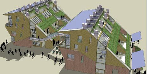 ????倫敦零碳館案例原型取自世界上第一個零二氧化碳排放的社區貝丁頓(BedZED)零碳社區。建成于2002年的貝丁頓社區擁有包括公寓、復式住宅和獨立洋房在內的82套住房,另有大約2500平米的工作空間。每套住宅都配有露天花園或陽臺,體現了住宅高密度與舒適生活的完美融合。社區位于英國倫敦南部,距市中心20分鐘車程,它的建成為可持續建筑創造了新的標準。
