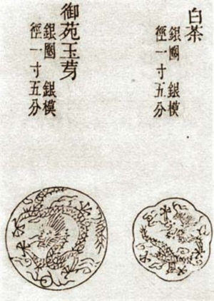 ????密云龍之后,貢茶求新求異的現(xiàn)象并未停止,而是以更快的速度,更加奇異的品類(lèi)連續(xù)推出。宋哲宗紹圣年間(公元1094—1098)“瑞云祥龍”躍居密云龍之上,成為貢茶魁首。至宋徽宗雙觀(1107—1110年)初,皇帝趙佶在《大觀茶論》中認(rèn)為白茶是茶中第一佳品。此時(shí),作為貢茶名品的,已由從一二只到了一大批。突出的如“試新”、“貢新”、“御苑玉芽”、“萬(wàn)壽龍芽”、“無(wú)比壽芽”。其中“無(wú)比壽芽”、“試新”和“貢新”合稱(chēng)三色細(xì)芽。自三色細(xì)芽出來(lái)后,“瑞云祥龍”已是屈居其下了。
