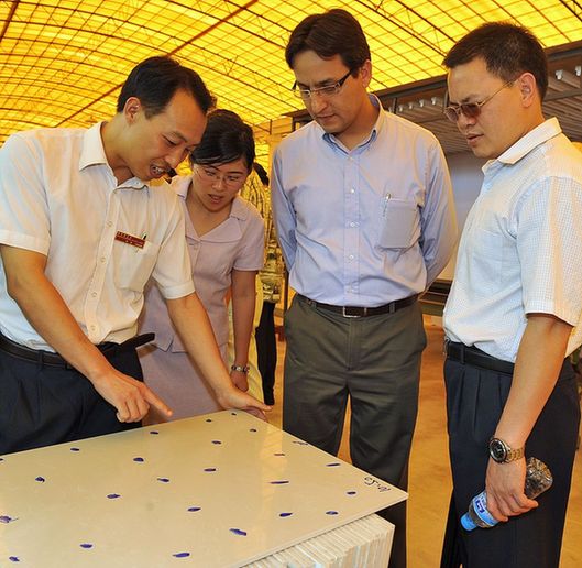 駐粵桂外國領事官員考察團一行到藤縣考察陶瓷工業園區。 孟亞西 攝