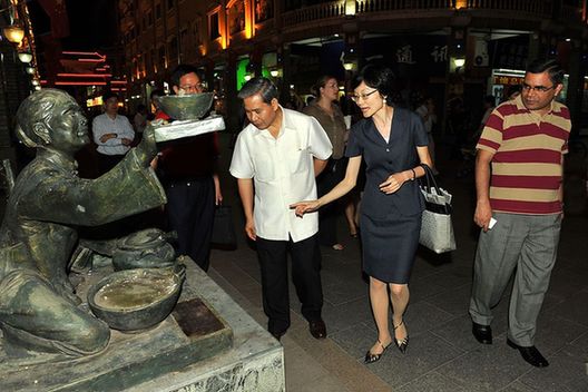 駐粵桂外國領事官員考察團一行游覽梧州騎樓城夜景。孟亞西 攝