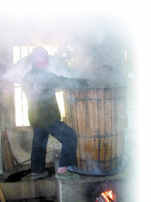 ????根據老茶人陳振東回憶,以前一直以來的傳統做法,是殺青后,揉捻,堆放隔夜,再烘干。至于形成這種做法,有其本身原因:在一般茶農家,由于要兼顧其他農活,從一早采摘茶青,到晾青,之后殺青(當時是手工炒),再到揉捻(當時是用腳踩),做好已經是比較晚了。于是,漚放一晚,明天再烘干成為一種比較流行的做法。當時,烘干是用一個當地稱作“甑”的竹編籮筐,一次只能夠烘幾斤最多不過十多斤的毛茶,而且,往往烘干一批,最起碼需要1~1.5小時。其他揉捻好還沒烘干的六堡茶,都需“漚”放在一旁等待。