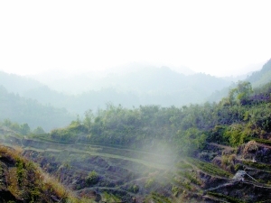 曾經是漫山遍野種滿茶樹的六堡鎮的群山,至今仍可在荒草枯葉中找到一些當年的茶樹根。