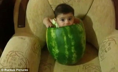 ????據外國媒體21日報道,美國視頻網站YouTube新發布的一段“西瓜寶寶”視頻最近爆紅:一個挖空的大西瓜被放置在一部沙發上,里面鉆出一個黑發小孩,因為西瓜太大,孩子爬不出來,但是他很享受的啃著西瓜的邊緣,吮吸著西瓜汁,絲毫沒有不情愿、不舒服的感覺。