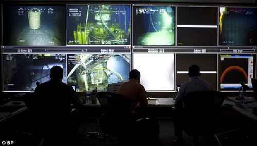 ????上周末,BP網站上出現一張得州休斯敦市指揮中心的工作照。照片顯示,幾名工作人員正在監控10個巨大的視頻顯示器,畫面顯示的均是墨西哥灣漏油的畫面。BP發言人斯科特·迪恩日前承認,事實上其中有幾個屏幕并沒有圖像,但為了制造效果,一名攝影師利用Photoshop軟件在空白屏幕上添加了虛假畫面。目前BP已經將原圖在網站上公布。