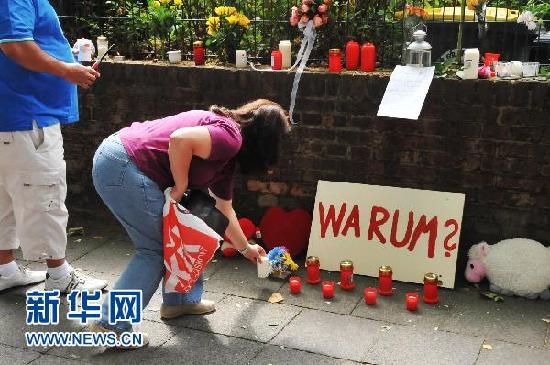 7月25日,在德國杜伊斯堡,當地民眾在踩踏事件發生地附近為遇難者獻花。 7月24日,德國杜伊斯堡市在舉行“愛的大游行”電子音樂狂歡節時發生踩踏事件。根據官方公布的數據,踩踏事件已造成包括1名女性中國公民在內的19人死亡、342人受傷。新華社記者胡小兵攝