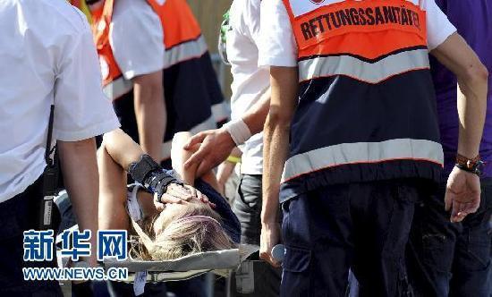 7月24日,在德國西部杜伊斯堡,醫護人員在踩踏現場轉移傷者。新華社發