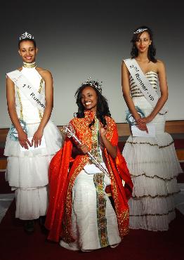 ????7月25日,在埃塞俄比亞首都亞的斯亞貝巴,奪得2010年度埃塞俄比亞小姐選美比賽冠軍的梅卡爾·米凱爾(中)與亞軍耶蒂姆·莫格斯(左)和季軍吉爾馬在一起。