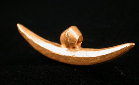 ????這種飾物在英國很罕見,在國外也僅僅發現過兩次。一般情況下,這種飾物都用鐵制成。這次在英國康沃爾郡發現的實心黃金飾物表明,它應該是一位富人的地位象征。專家已將這件黃金飾物列為珍品,并移交到康沃爾皇家博物館展出。