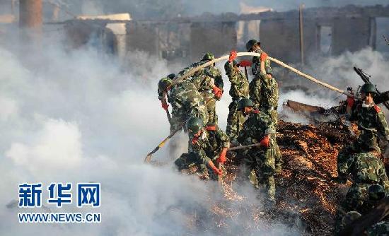 8月16日,消防人員在現場滅火。 新華社記者王建威攝