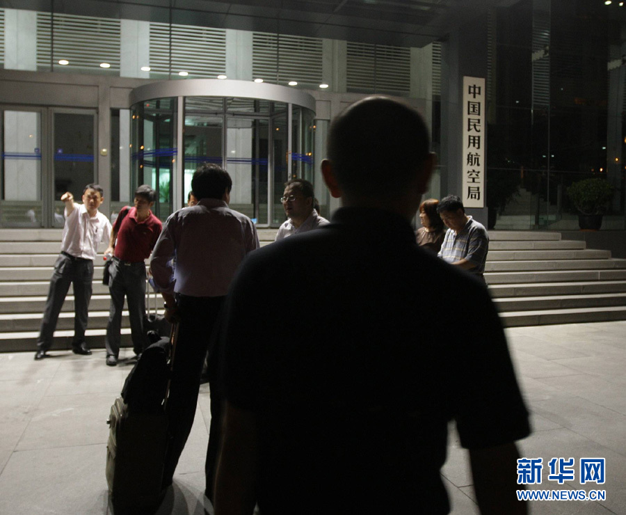 ??? 2010年8月25日 民航總局工作組趕往黑龍江伊春 8月24日,21時35分左右,河南航空有限公司一架ERJ-190型飛機在伊春機場失事。民航局領導率工作組連夜趕往現場。這是工作人員在北京中國民用航空局前準備出發。新華社記者 邢廣利 攝