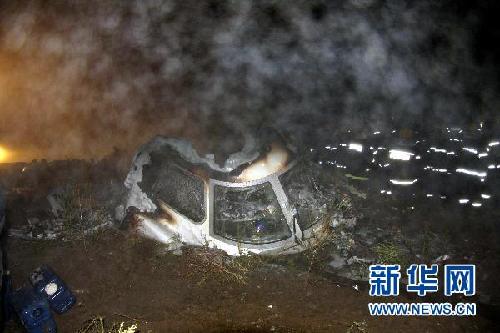 8月25日凌晨,救援人員在失事飛機(jī)殘骸邊開(kāi)展救援工作。新華社發(fā)(李廣福 攝)
