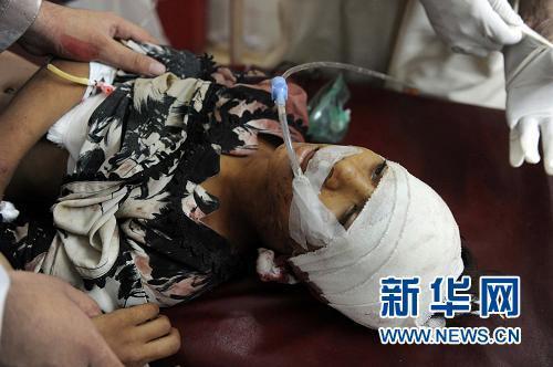????9月7日,在巴基斯坦西北部的白沙瓦,一名在爆炸中受傷的女孩在醫院接受治療。巴基斯坦西北部科哈特市一警察居住區7日晚發生自殺式炸彈襲擊事件,造成至少23人死亡、80多人受傷,傷亡者中大部分為警察及家屬。警方拆彈人員說,襲擊者使用了至少400公斤的炸藥。新華社/法新