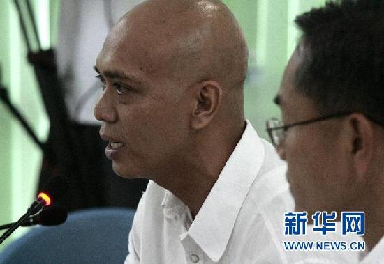 ????9月7日,在菲律賓首都馬尼拉舉行的“事件調(diào)查和評(píng)估委員會(huì)”聽(tīng)證會(huì)上,被劫持大巴的司機(jī)盧邦(左)回答問(wèn)題。新華社發(fā)(法布里加爾攝)