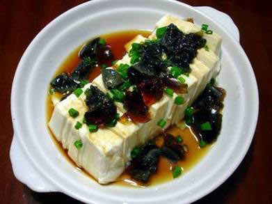 ????2、小蔥皮蛋拌豆腐(豆腐+小蔥)