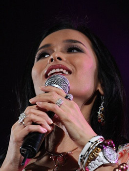 ●現場演繹:廣西老鄉韋唯是我們最熟悉的明星之一,在昨天的晚會中,她身穿一襲碎花長裙出現,引來了無數觀眾的喝彩。一上臺,一句帶桂柳口音的“大家好!”馬上拉近了與觀眾的距離。