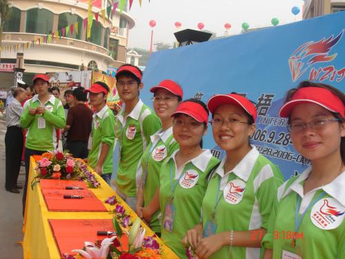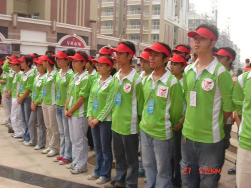 青年志愿者在市星朗名都廣場接待參加第三屆梧州國際寶石節(jié)的來賓