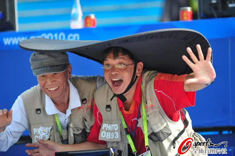 2010年廣州亞運會龍舟比賽上,攝影記者自制防曬傘。而在游泳比賽,外國記者用水下裝備進行拍攝錄制,均顯示了不凡的創(chuàng)造力和敬業(yè)精神。