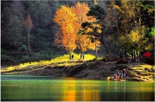 ????山水美,楓葉紅。百里鑒河山水畫(huà)廊,流光溢彩,大氣磅礴;百里紅葉畫(huà)廊,精艷天下,云山鑒水將德保這座美麗的“壯鄉(xiāng)水城”裝扮得像盛妝待嫁的美女。滿山遍野的楓樹(shù)林一如飄逸的紅紗帶,纏繞在連綿的山間,令人仿佛置身于紅色的海洋。紅葉森林公園位于德保紅葉景觀最美、最集中的百布水庫(kù)和上章湖水庫(kù)一帶,擁有全國(guó)少有的大規(guī)模楓林,漫山紅葉火紅似霞,宛如“南國(guó)紅楓天堂”。園內(nèi)多姿多彩的自然生態(tài)景觀、底蘊(yùn)深厚的人文景觀、綺麗迷人的水文景觀及變化萬(wàn)千的天象景觀,將紅楓湖、上章湖、天鵝湖、紅葉谷裝扮成集休閑、避暑、游覽于一體的大旅游圈。人在景中游,景從身邊過(guò)。在舒適宜人的山地森林小氣候中,穿梭于奇特的峰叢洼地和千年古樹(shù)之間,與白鶴、穿山甲、水獺等自然精靈親密接觸,感受獨(dú)特的矮馬楓情、豐富的民族文化,您一定會(huì)心醉神迷,樂(lè)不思?xì)w。