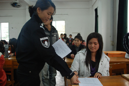 梧州零距離網訊(通訊員 吳建錦 覃立鵬)3月7日下午,特巡警支隊六大隊、西堤警務站、蝶山移動警務站共同組織了8名民警來到梧州學院西校區,舉辦了“三訪三評進校園——防盜防搶專題安全知識講座”,將安全防范工作送到同學們當中,為同學們上了一堂精彩的安全教育課。200多名學生參加了講座。