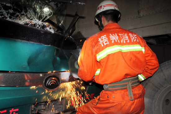 梧州零距離網(wǎng)訊(通訊員 李正文)4月3日晚,南梧高速路岑溪段發(fā)生一起四車先后兩次追尾的交通事故,導(dǎo)致兩名司機(jī)受傷被困車內(nèi),所幸沒有造成人員死亡。