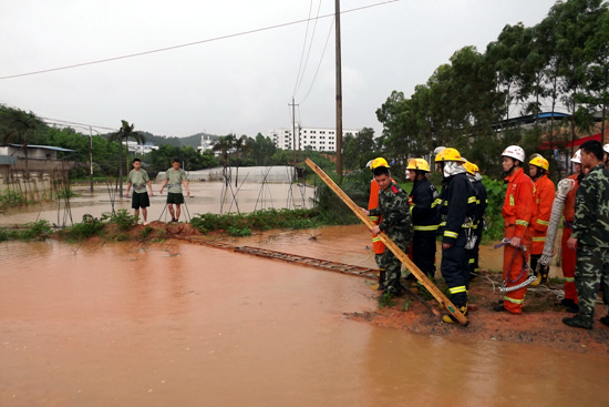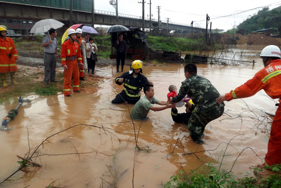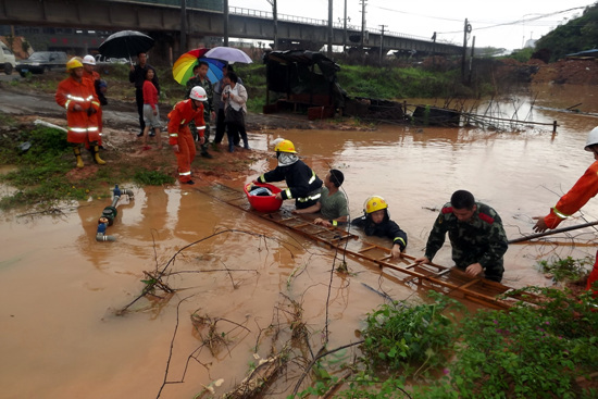 梧州零距離網(wǎng)訊(通訊員 張冠濤 李研銘)4月19日上午,梧州市遭特大暴雨侵襲,迅猛的大雨使多處形成內(nèi)澇,紅嶺一號(hào)鐵路橋附近提升水泵站發(fā)生洪水內(nèi)澇險(xiǎn)情,6人被困,消防官兵淌水搭橋成功救出被困人員。