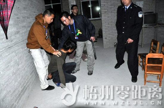 4月22日晚,岑溪市公安局打擊“雙搶”專案組冒著雨,在街上巡邏伏擊。9時,專案組民警發現兩名男子駕駛一輛摭住車牌的男裝摩托車在街面流竄,東張西望,形跡十分可疑。專案組民警馬上跟蹤,在街上緊盯著那兩名男子不放。果然不出所料,在兩名男子正欲搶包的時候,專案組民警果斷將其擒獲。
