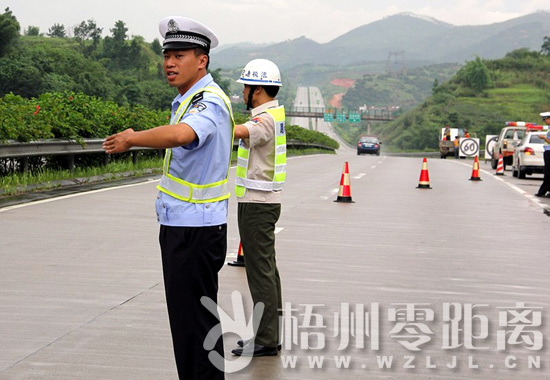 6月25日上午九時,梧州交警支隊(duì)高速一、三大隊(duì)民警聯(lián)合岑梧高速公司、路政等部門在包茂高速公路G65 K2790+500M進(jìn)行一次水毀險情的應(yīng)急預(yù)案演練。石桂暉 黃寧 攝