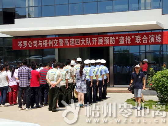 梧州零距離網訊(通訊員 周慶)6月29日上午,梧州市公安局交警支隊高速公路管理四大隊與廣西岑羅高速公路有限責任公司有關部門在岑羅高速公路岑溪東收費站和該公司保險庫開展了2012年岑羅高速公路預防盜搶聯合演習活動。
