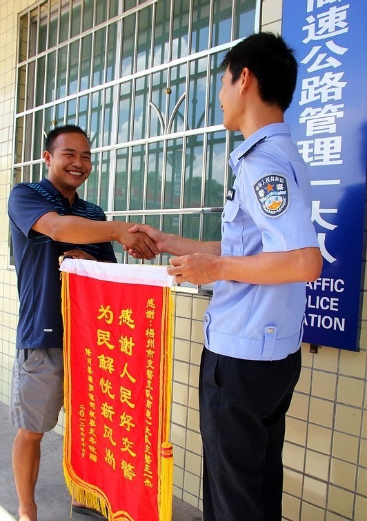 梧州零距離網(wǎng)訊(通訊員 李炎靜 石桂暉)“感謝交警王一杰冒著大雨熱情幫助我們排除困難。”這是陸川縣珊羅鎮(zhèn)駕駛員廖天冬送來的一封對(duì)梧州市公安局交警支隊(duì)高速公路管理一大隊(duì)感謝信的部份內(nèi)容。
