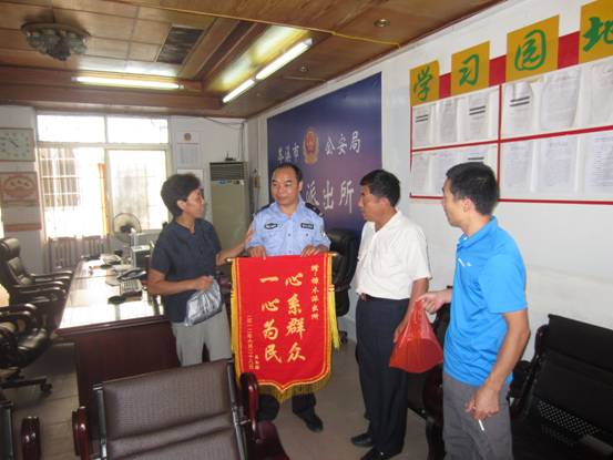 第二天剛上班,王玉萍就帶領她的一幫家屬興高采烈地來到樟木派出所,滿懷喜悅地遞上一面印著“心系群眾、一心為民”的錦旗送到樟木派出所劉達志所長手中,以表達對派出所民警和協(xié)警積極為民排憂解難的感激之情。 |