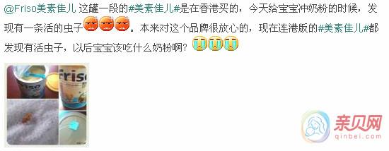 網(wǎng)友“紫-米”在微博上爆料港版美素佳兒內(nèi)有蟲(chóng)子(親貝網(wǎng)配圖)