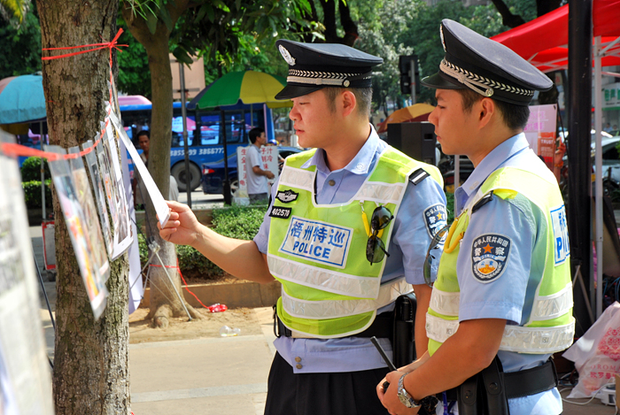 12日上午,西堤警務站、寶石城移動站特巡警代表在潘塘公園觀看救助楊家大小孖的愛心報道。