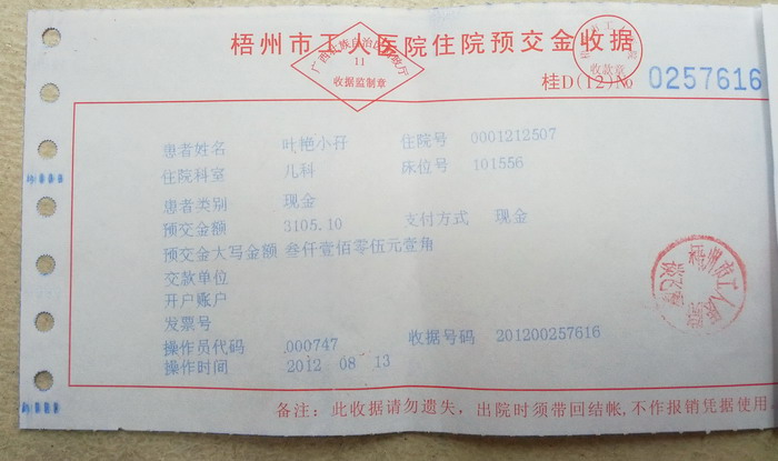 8月11、12日愛心活動募集到的捐款悉數存入楊家小孖醫療賬戶。黃祎婧/攝