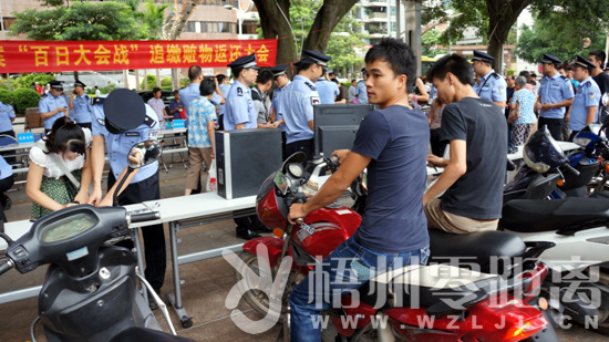 梧州零距離網(wǎng)訊(記者 覃燕霞 通訊員 曾亮)今日(8月17日)上午,我市公安局在鴛江麗港中心廣場舉行偵查破案“百日大會戰(zhàn)”追繳贓物返還大會,追繳回來的56臺摩托(助力)車以及一批電腦、電視等物品全部被失主領回。
