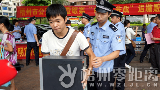 ??? 8月17日上午,我市公安局在鴛江麗港中心廣場舉行偵查破案“百日大會戰(zhàn)”追繳贓物返還大會,市民領回電腦。
