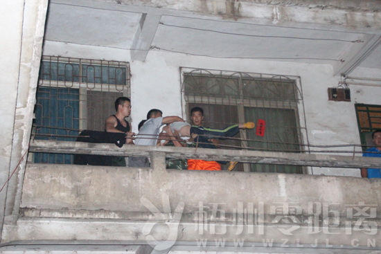 當晚23時35分,岑溪市110指揮中心接到報警,稱北環大道一居民區內有一男孩正爬在二樓走廊護欄外,準備跳樓。接報后,110指揮中心迅速調集消防大隊和轄區派出所前往現場,當消防官兵和民警趕到該居民區大門口時,只見里面樓房二樓的護欄外站著一名10歲左右的男孩,單手抓著護欄,十分危險。民警準備上前與其對話,但一看到民警男孩情緒更加激動,救援人員不敢輕舉妄動。隨后,消防員趁著夜色順著墻角沿樓梯悄悄的上至二樓,但還沒靠近男孩就被其發現行蹤,只好撤回。經過救援人員現場商討營救方案,決定由一名男孩熟悉的群眾在對面與他對話,分散其注意力,消防員趁機迅速將墊子搬到男孩底下,預防男孩往下跳,同時,正在與男孩對話的群眾和消防員立即上前將其緊緊抓住,避免了一場悲劇的發生。