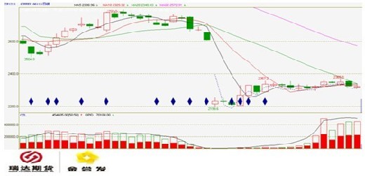 ????技術面看,股指昨日收出一根縮量的假小陽線,并繼續收于5日和10日均線之下,但仍繼續站在60日均線之上,上升趨勢尚未改變。總體來看,短期股指多頭情緒依然存在,而在十八大召開之際,市場仍以穩中有升為主基調,但由于目前國內外經濟的復雜性,中長期多頭趨勢的形成還需要時間和更多利好要素的逐步積累。今日期指或企穩震蕩,IF1211支撐位2306.0,,壓力位2336.0,日內采取高空低多策略。 |