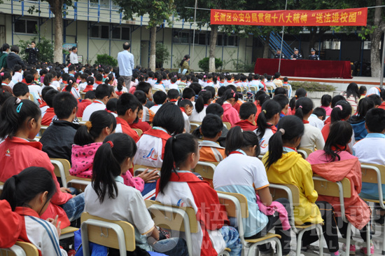 梧州零距離網(wǎng)訊(通訊員 莫黎)為貫徹黨的十八大精神,營造“健康、文明、和諧、平安”的校園環(huán)境, 11月19日上午,長洲公安分局組織民警深入龍新小學(xué)開展“送法進(jìn)校園” 活動(dòng)。民警用通俗易懂的語言、生動(dòng)貼切的案例開展法制教育,給全校300多名師生送上豐盛的“法制大餐”。