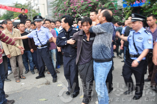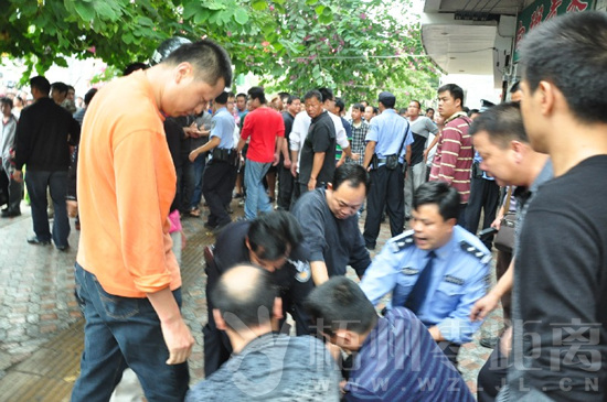 劫匪在店門口被一涌而上的民警控制,成功解救人質。