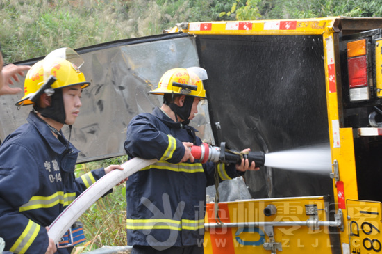 各部門迅速進(jìn)行分工對(duì)現(xiàn)場(chǎng)進(jìn)行處置,交警和路政部門立即對(duì)高速路段進(jìn)行封鎖警戒,實(shí)行車輛分流,避免車輛堵塞。消防部門架設(shè)水槍陣地對(duì)現(xiàn)場(chǎng)進(jìn)行監(jiān)控。醫(yī)療部門將受傷司機(jī)進(jìn)行簡(jiǎn)單包扎,并送往醫(yī)院進(jìn)行治療。安監(jiān)部門聯(lián)系專業(yè)處爆人員到場(chǎng)處置,并調(diào)派兩輛押運(yùn)貨車進(jìn)行轉(zhuǎn)移。