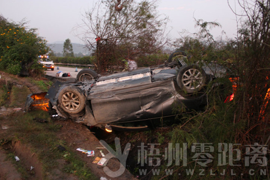 梧州零距離網(wǎng)訊(通訊員 蘇延炎)12月5日下午4時許,一輛粵A牌照的大眾小車從梧州往南寧方向行駛,駕駛?cè)藶橼s時間就超速駕駛,當駕駛員行駛至包茂高速G65線2822公里處,由于超速產(chǎn)生的疲勞致使操作不當,將小車駛進了高速公路旁的排水溝里,最后“四腳朝天”的翻在高速公路排水溝內(nèi),萬幸的是,駕駛?cè)藳]有受傷。