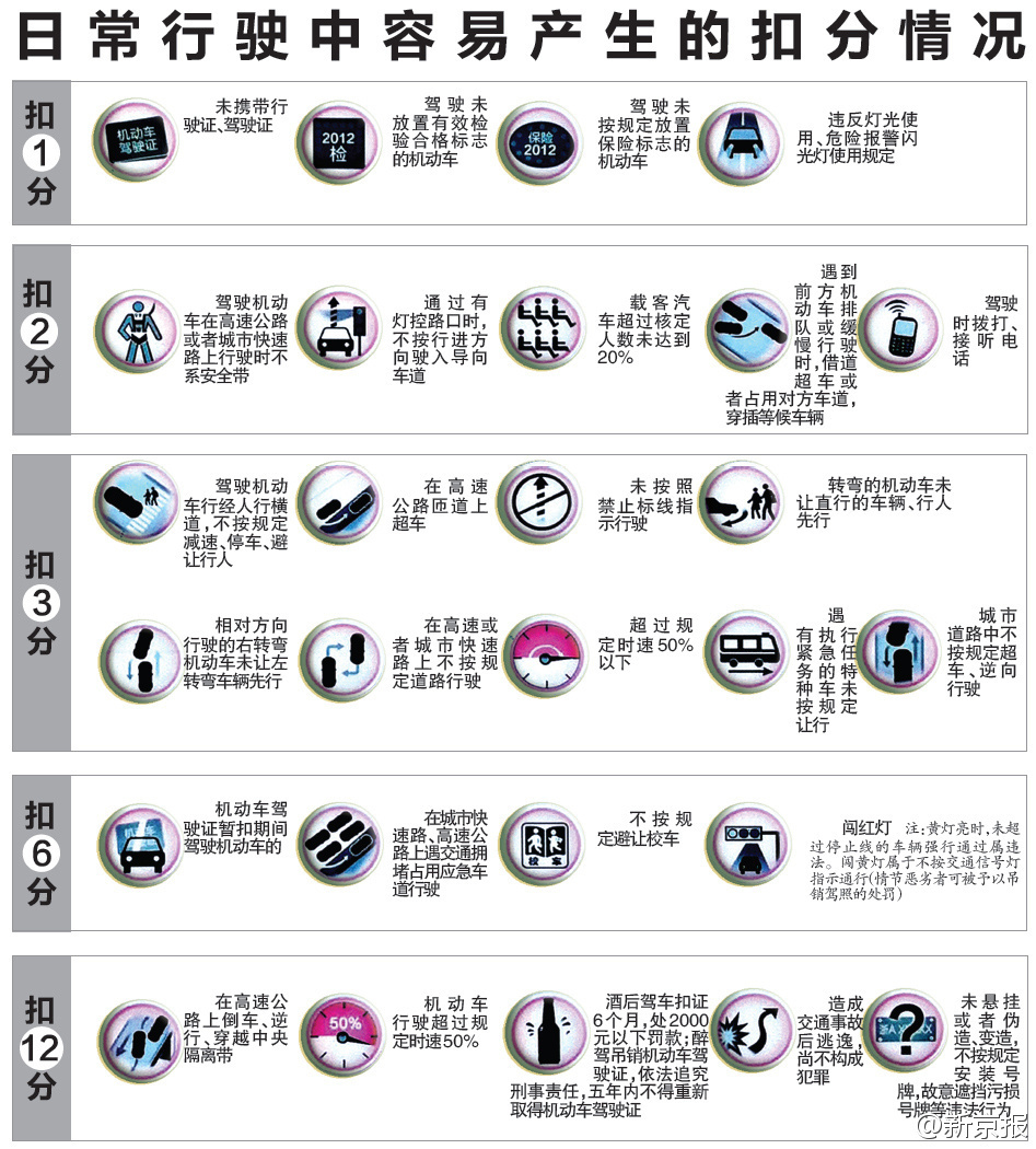 ????公安部“123號令”除了對酒后駕車、事故逃逸等嚴重交通違法行為一次扣12分外,一些不文明行車行為也納入扣分細則,如駕駛時撥打接聽電話扣2分,駕駛二輪摩托車不戴安全頭盔的扣2分,遇到執(zhí)行緊急任務(wù)的特種車未按規(guī)定讓行扣3分,行經(jīng)人行橫道不避讓行人扣3分,不按規(guī)定避讓校車扣6分……
